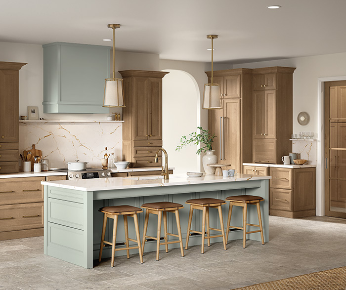 Sabine offers a furniture-like feel to your cabinetry with its inset profile design. Consider using the Sabine door style for your island in a rich wood stain to evoke a fine furniture look.